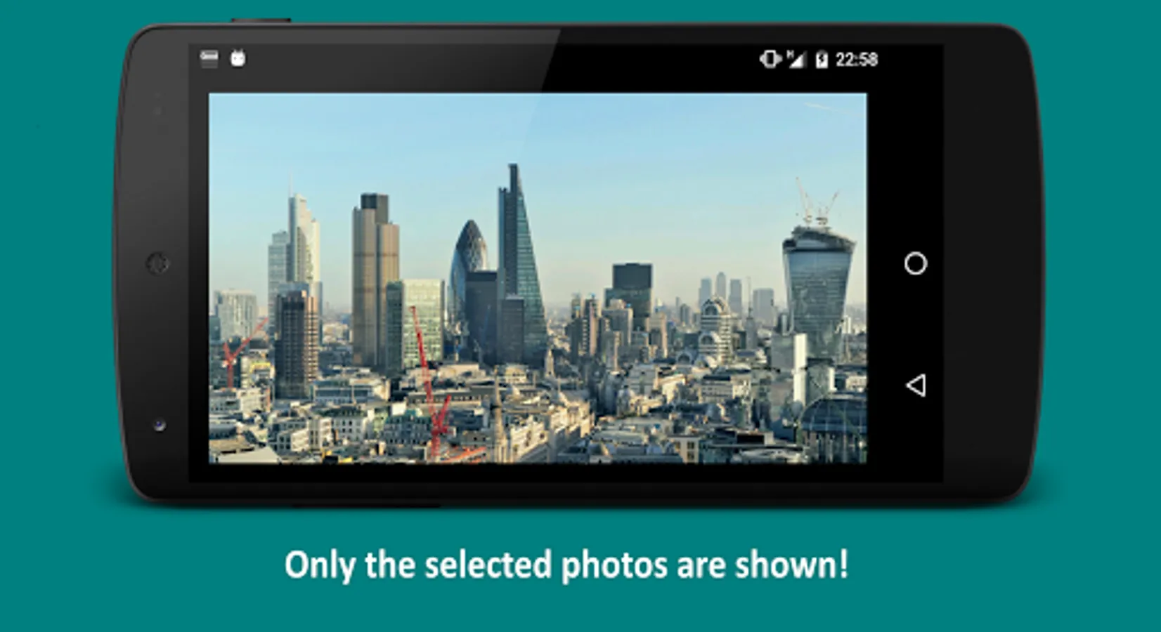 - Select photos and then display them on top of the lock screen for controlled viewing (10+ photos requires pro version).