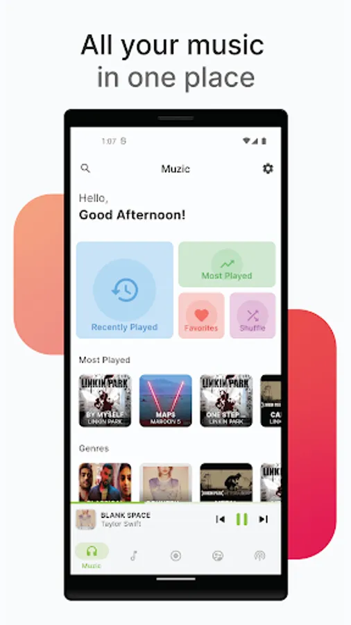 You can easily manage your 'Most Played', 'Recently Played', 'Genres' and 'Playlists' all in the My Music section. Plus, you can switch between light and dark modes, and even choose a custom accent colour to personalise your experience.