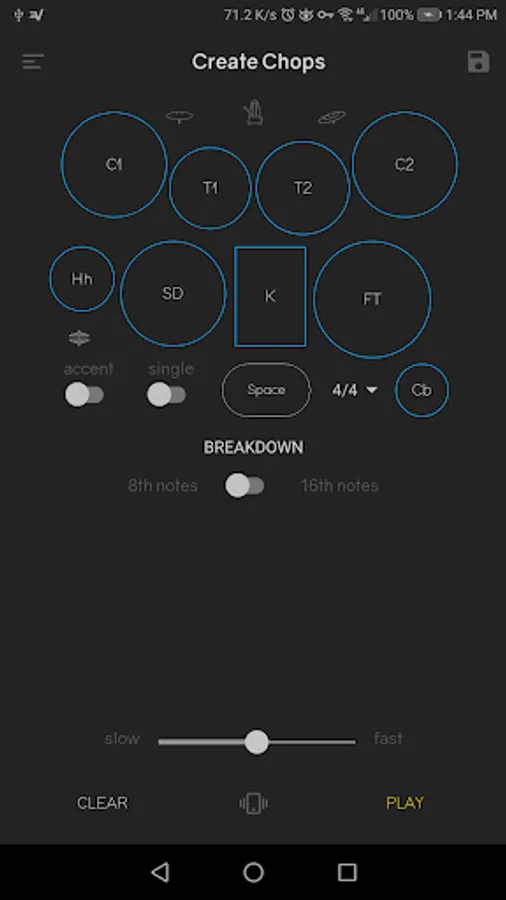Imagine you are on the bus and that awesome fill comes to mind? With Drum Chops Builder you can easily to create it right on your phone, listen to it and save it for later.