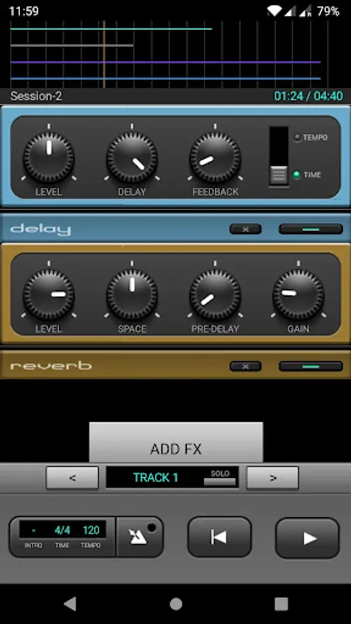 * Audio effects: Fuzz, Chorus, Delay, Equalizer, Reverb, Phaser, Compressor