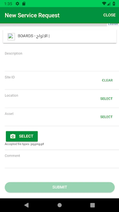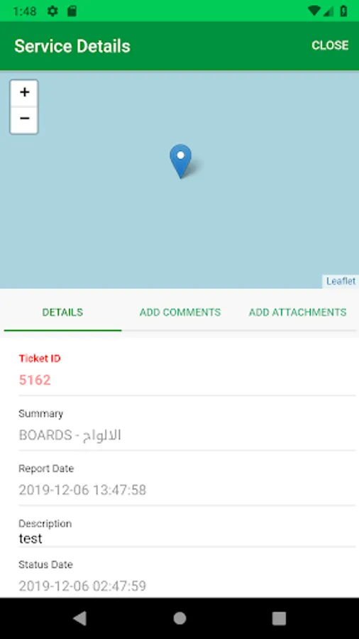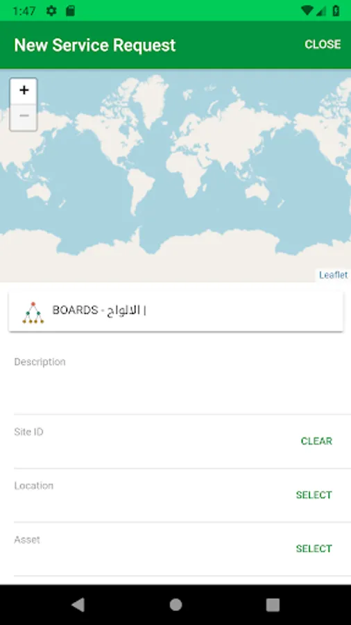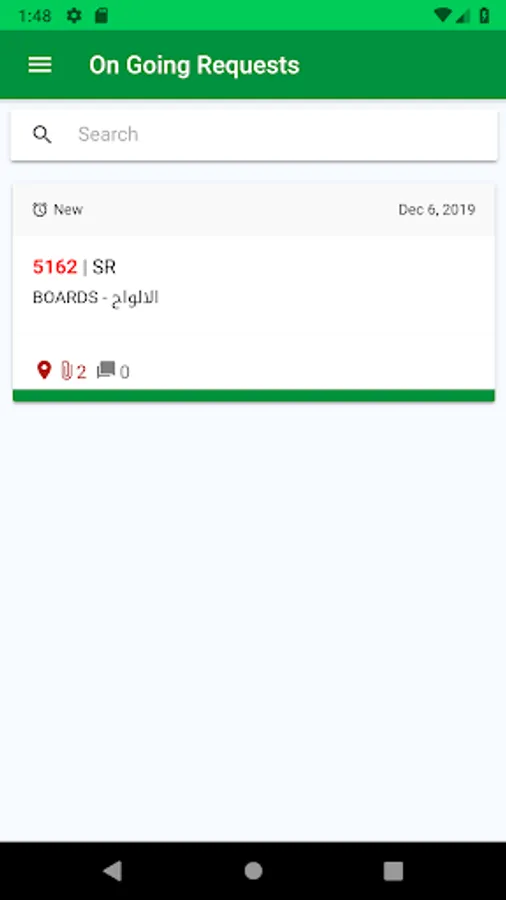 Users can type a description of the request, and enter a location for the request. They can also view the requests that they created that are currently unresolved so that they can follow up on those requests.