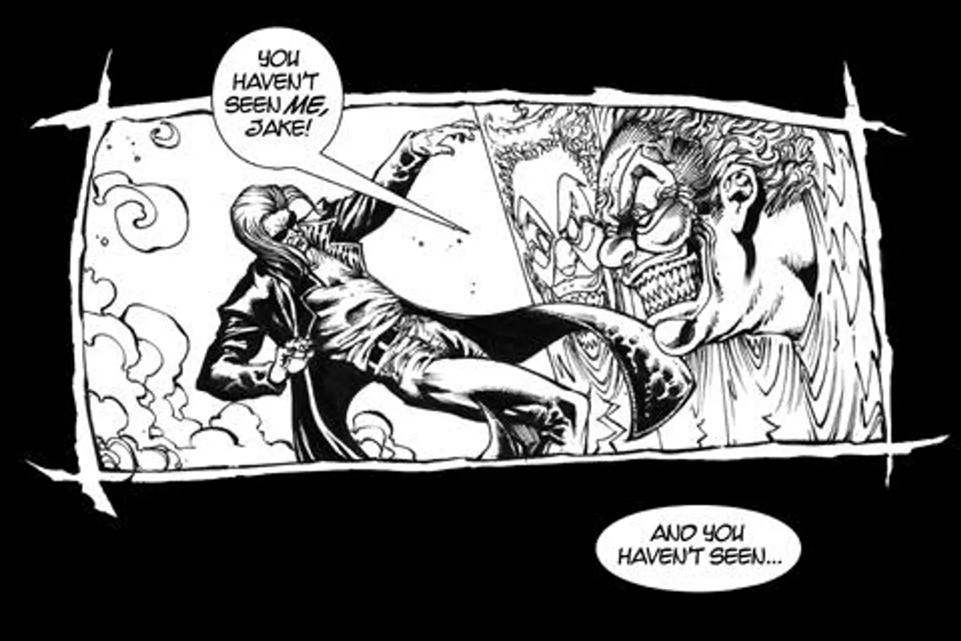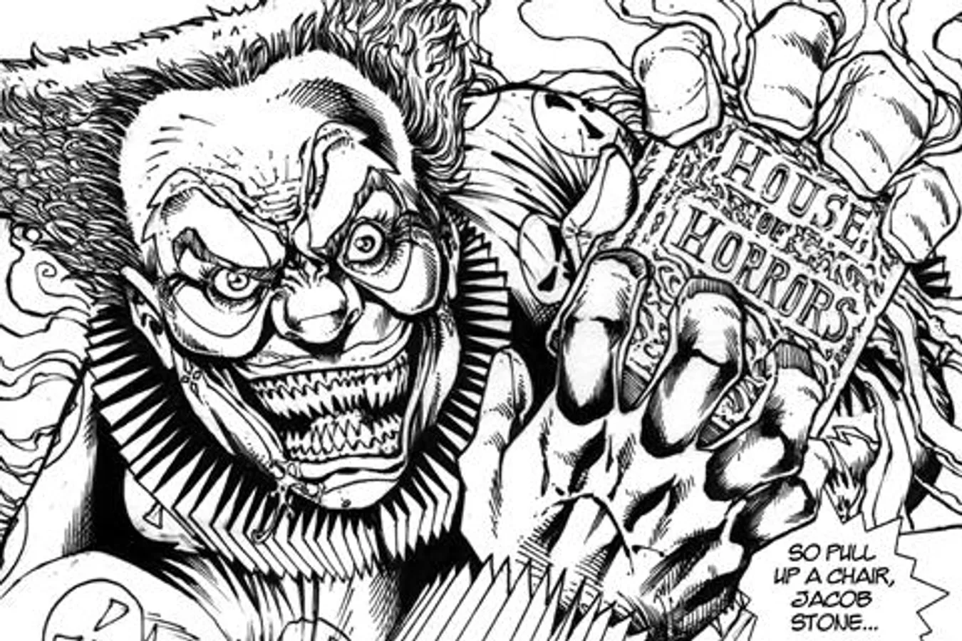 That's right Kiddos... in this final issue of the Funhouse of Horrors, the clown is sent in indeed. When Jake Stone "Ghost Writer" gets a mysterious letter (postmarked a lifetime ago) inviting our favorite paranormal investigator to look into strange happenings at a Carnival... suddenly a familiar painted face appears. You got it! Jexter and his entire Carnival of Souls make a surprise appearance!