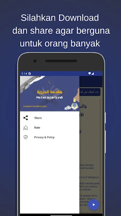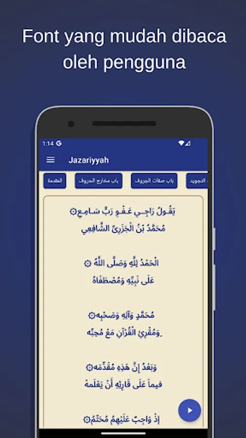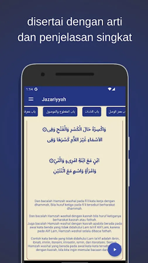 The Matan Jazariyyah application is complete with translation and a brief explanation