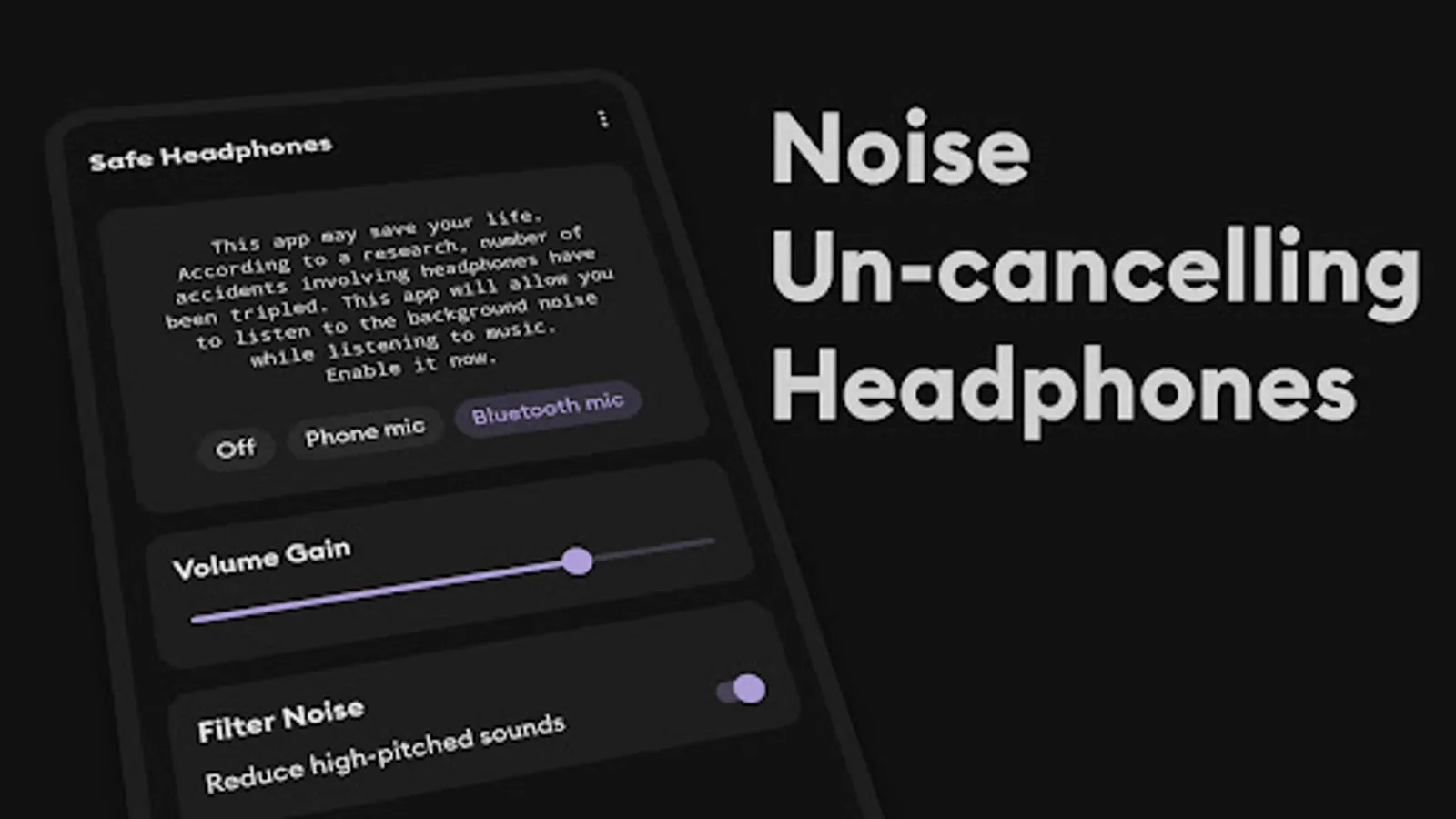 This app will turn your Headphones into Noise Un-Cancelling Headphones which will allow you to hear background noises and Car Horns while listening to Music. Now you can use your headphones in public places without worrying about safety. This app can also be used as a hearing aid if anyone with hearing loss. This app also works with Bluetooth headphones. Boost your hearing and amplify the sound of the surroundings with ease.