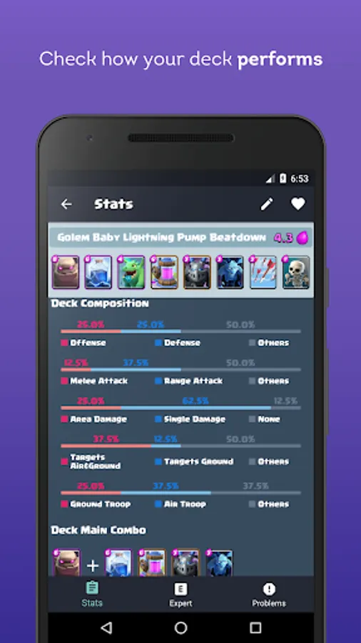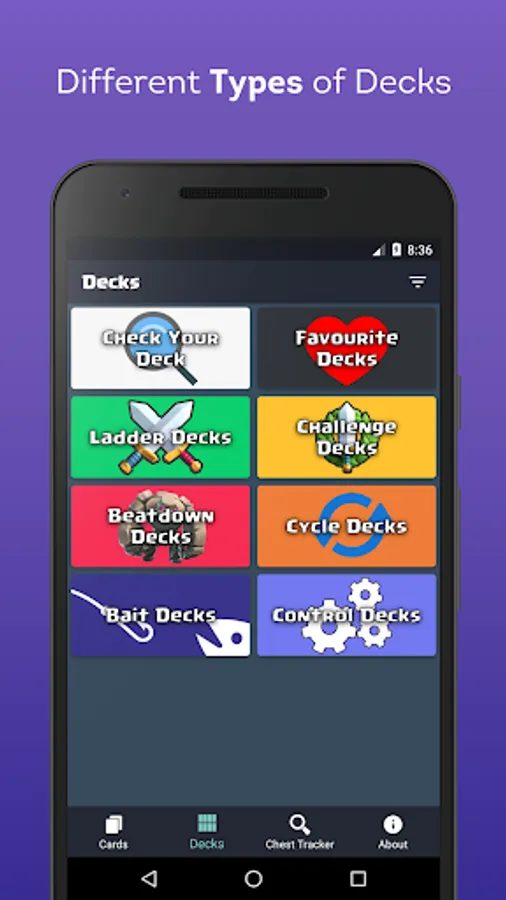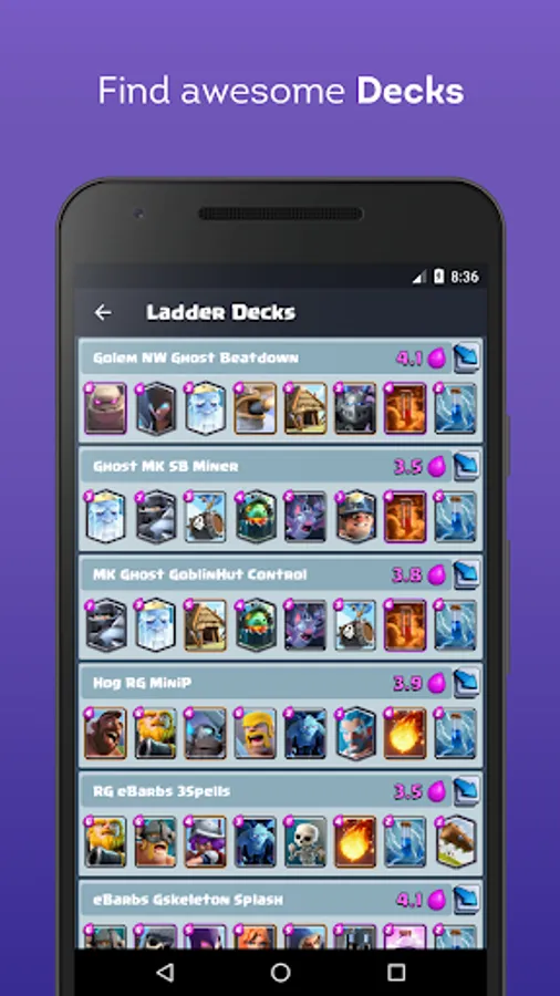 Popular decks in Clash Royale will be added frequently and also you can save these decks in your Favourites. A detailed analysis of each deck is also present, with this you can determine whether your deck is properly balanced or not. Problems and recommendations for each deck are also present.