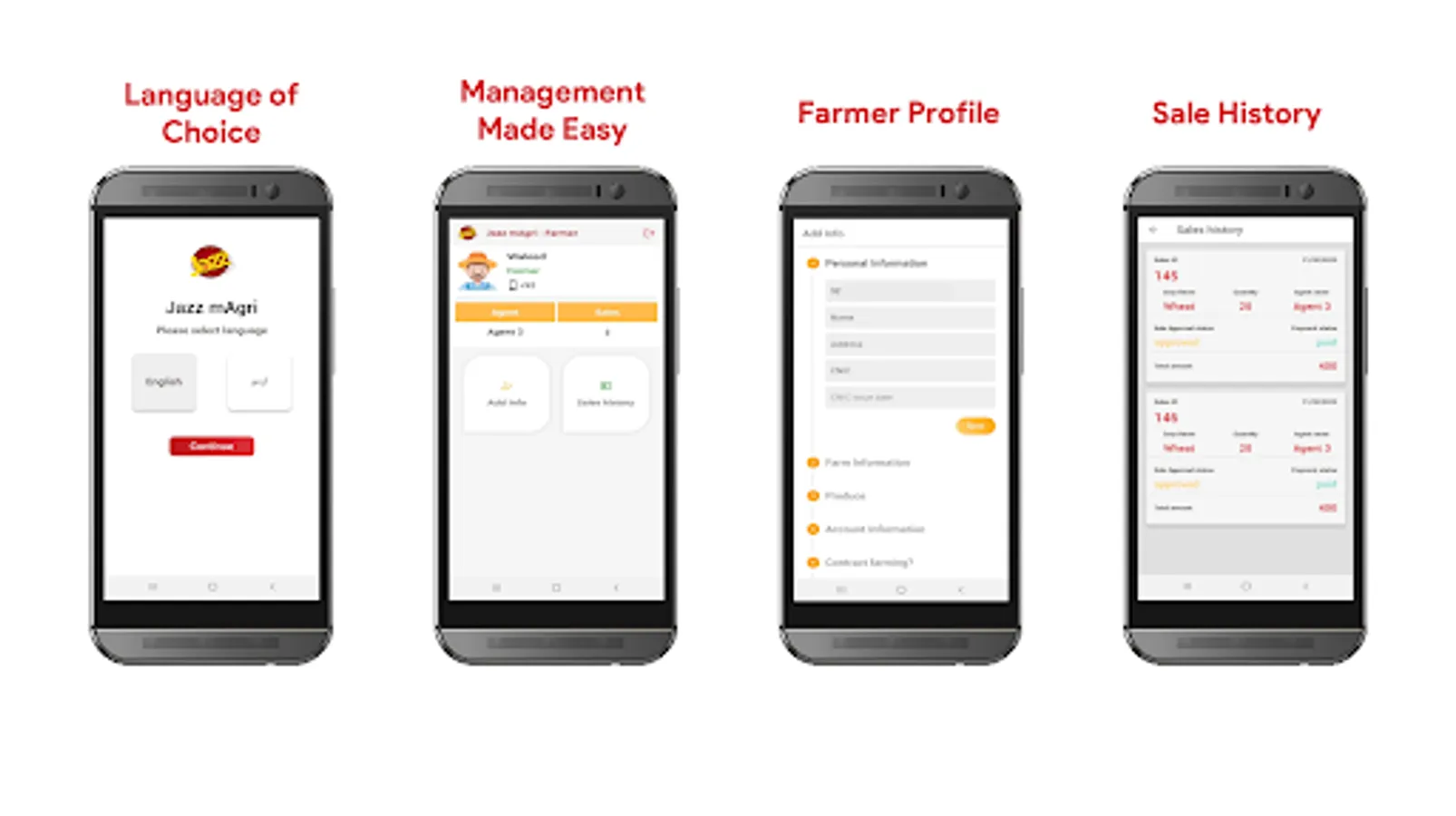 Jazz mAgri app is part of the Jazz mAgri suite that allows farmers and agribusinesses to easily and conveniently record farm details and crop sales. Farmers can have complete visibility about how much they have sold, how they are getting paid and the status of their payments. Agribusiness field staff can easily share information from the field and manage their procurement targets.