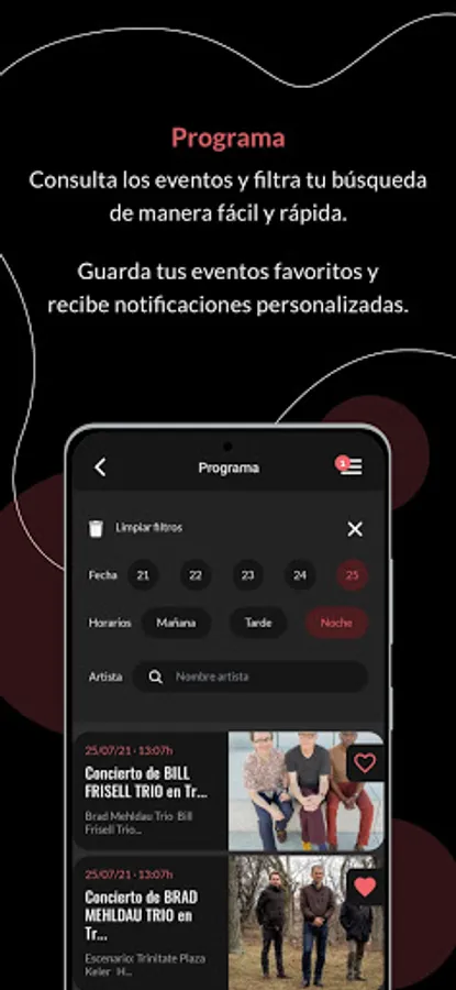 News: You can keep up to date with everything that happens inside and outside the Festival, wherever you are. In addition, you can save the news that you like the most, as favorites.
