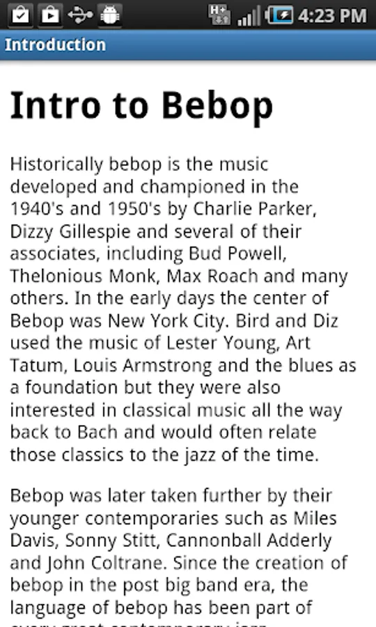 This latest in the iImprov series from Jazz Apps Mobile is designed to help take the mystery out of the language of Bebop. There are 9 comprehensive lessons and 8 JAM- A-longs.
