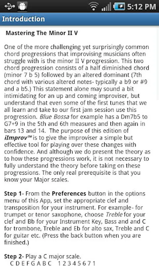 The iImprov series is intended for jazz improvisers of all levels to help them gain and perfect the tools of the craft. These apps are not presented progressively as each one is designed to target a specific need in any jazz improviser’s arsenal. Beginning and intermediate musicians can benefit from full explanations of the theory and concepts involved in tackling specific challenges that face the improvising musician, as well as apply them in the applications’ Jam-A-Long sections. More advanced players can benefit from focusing on specific keys and progressions for Jam-A-Long. Each Jam-A-Long allows the user to select any key to improvise in over an endless loop. Tempos are also adjustable.