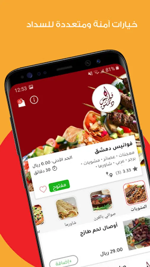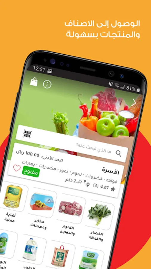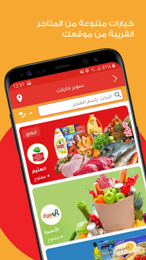 - More options of stores such as supermarkets, restaurants, bakeries, dates, sweets, roasts, health and organic food, homemade food, flowers, accessories and more in one App.