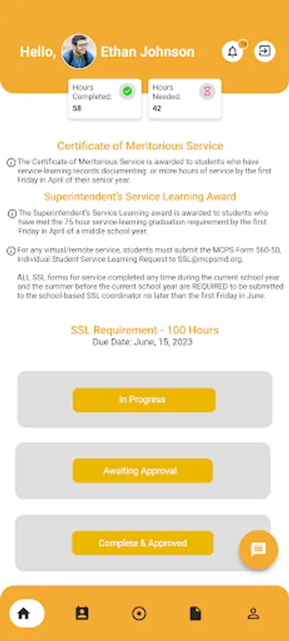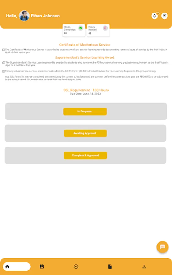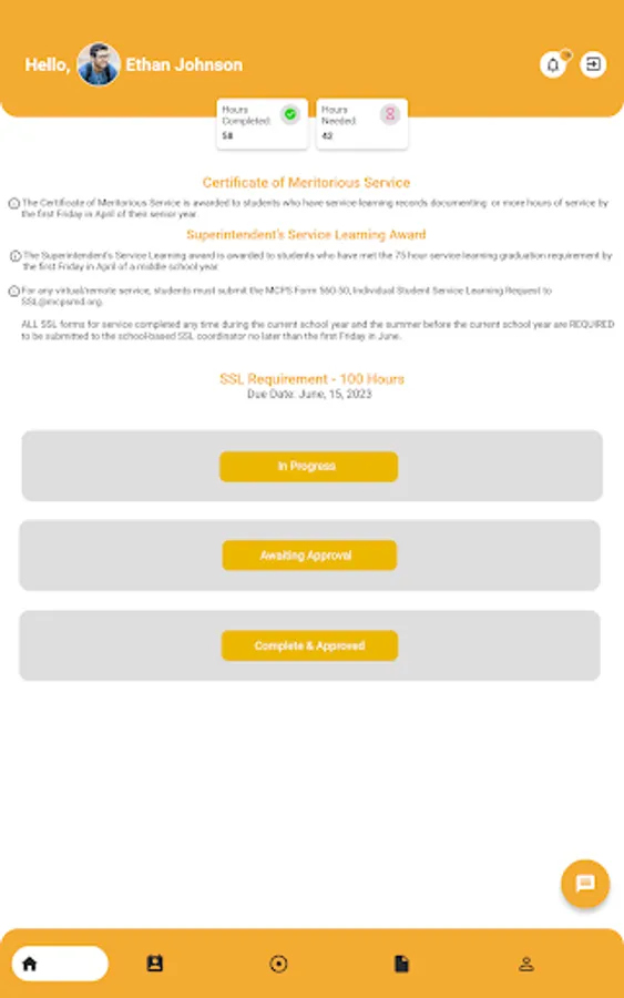 Easily log their SSL hours: Our app allows students to log their SSL hours quickly and easily, with just a few clicks. Students can add details about the activity they completed, the organization they worked with, and the number of hours they completed.