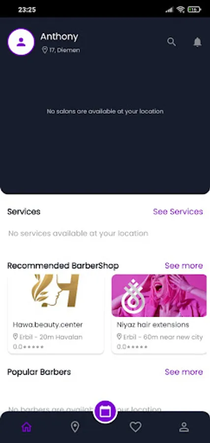 * user can see the salons, salon services , salon products nearby by choosing location in user app,