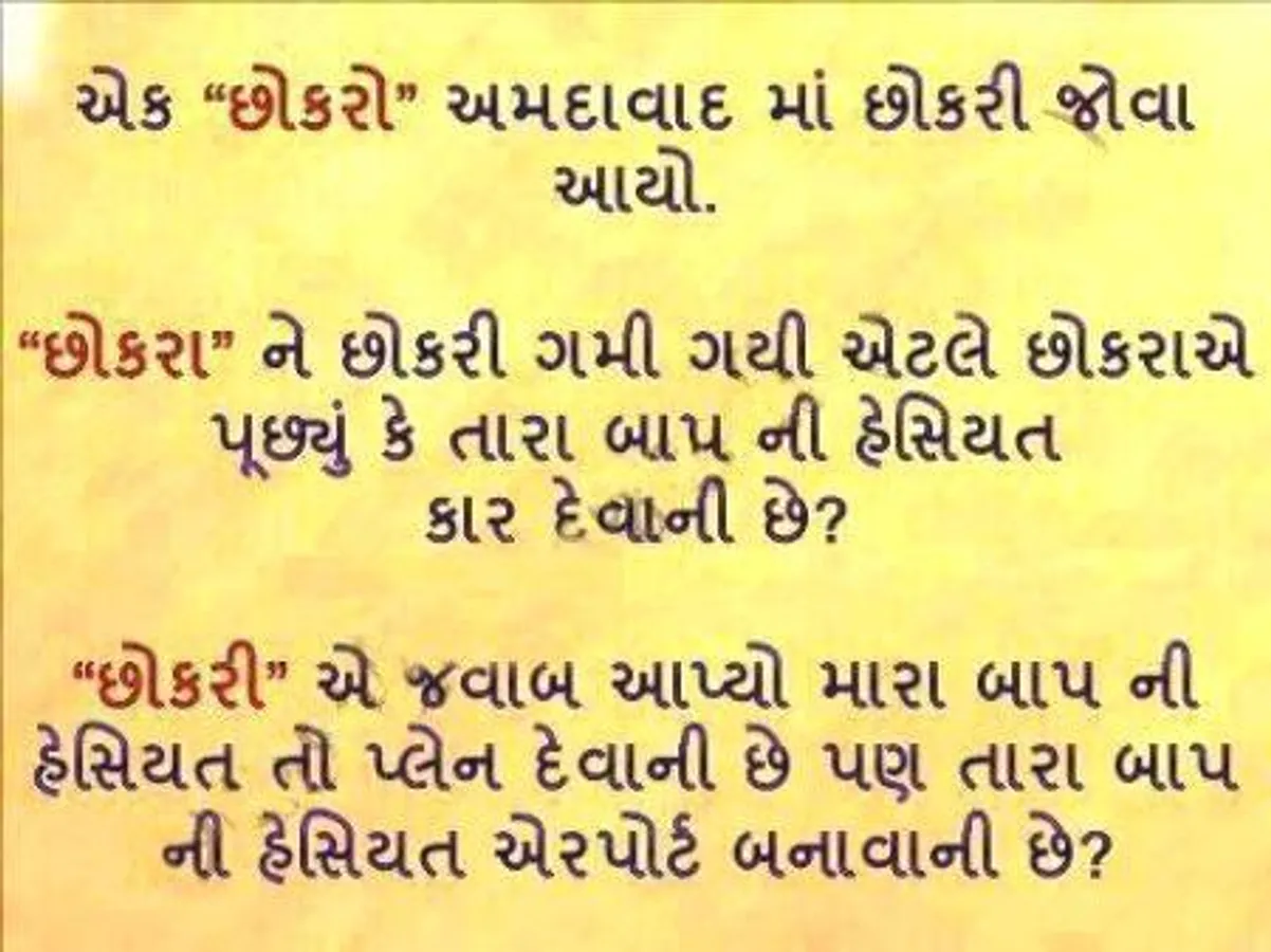 One of the nice collections of funny Gujarati jokes pictures that will make you laugh out loud. This app is full of funny pictures and our collection of pictures is getting bigger everyday as new funny pictures are uploaded constantly. This funny pictures app also has a collection of funny jokes. So you can hare it in groups and Enjoy with friends.