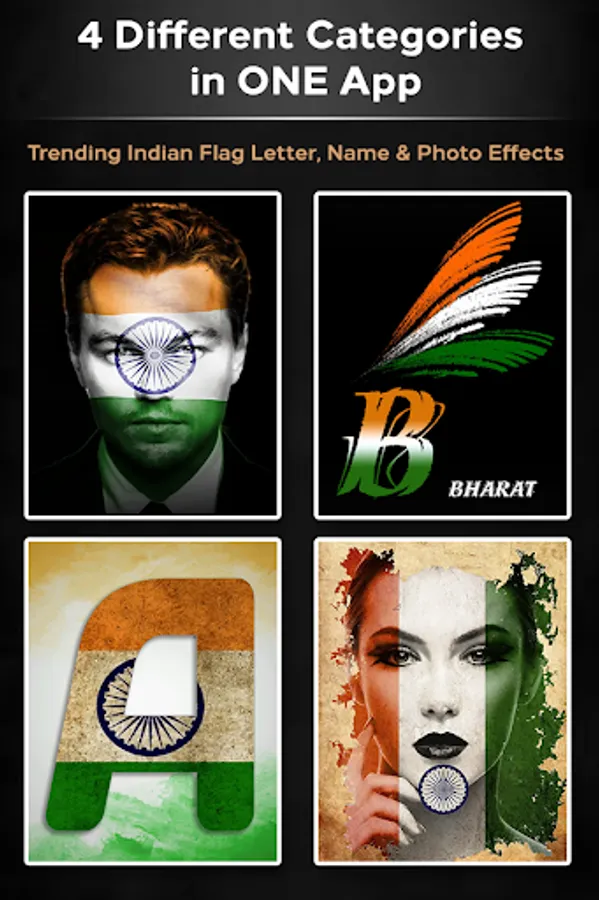 Now Celebrate 76th Independence Day of INDIA with our best app My INDIA photo DP. You can create your picture with INDIAN flag and feel proud to be an INDIAN. We have created 100+ mind blowing flag effects for you. So now decorate your pictures with high quality Flags and share with your Friends.