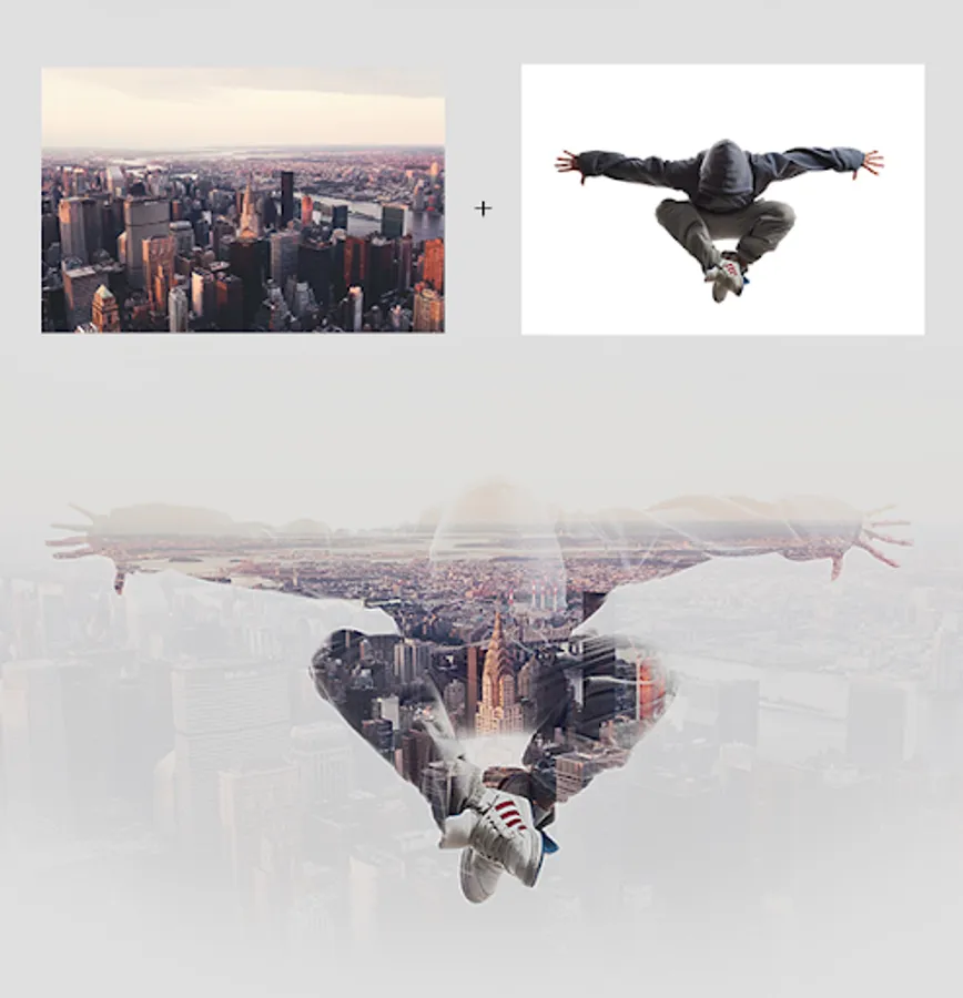 Photo blending Effect is an advance photo editor that allows you to blend two images together to create a double exposure effect!