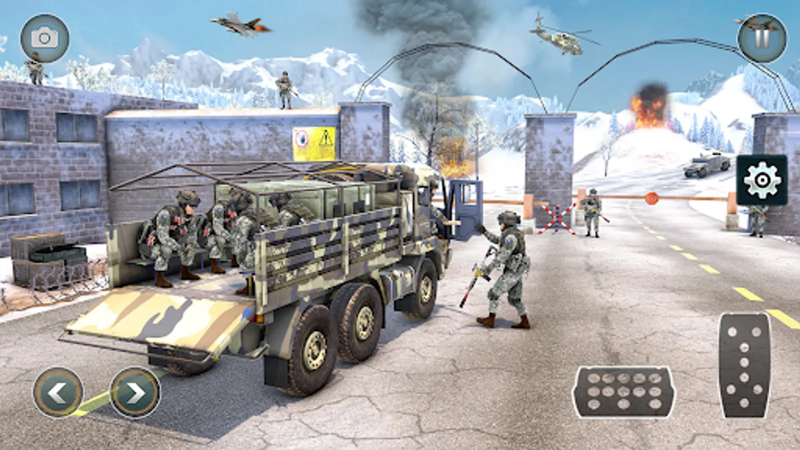 Drive army truck simulator to the army game base camp smoothly following the maps of free games. Army mission games 3d are the war games of this year so install our army games on your device and enjoy the thrill of a truck driving simulator. This army truck driving simulator is one of the coolest army games. New truck driving games are free army truck game that not only gives you a feel of difficult roads but also give you the real feel of new army games. You will have the real feel of army truck driving mission games with thrilling music of war games. The new army truck driving simulator games is here. If you are a lover of driving games then have this army driving for a real thrill and fun games.