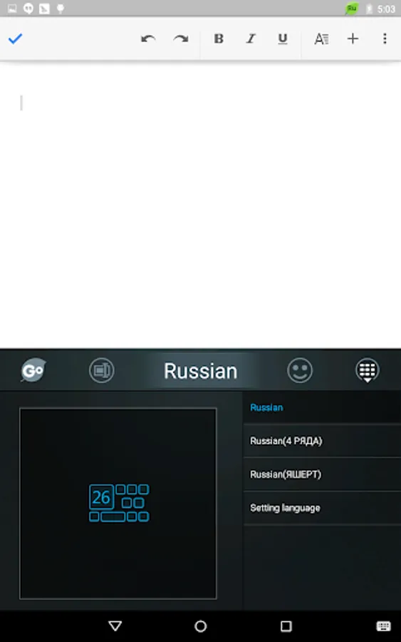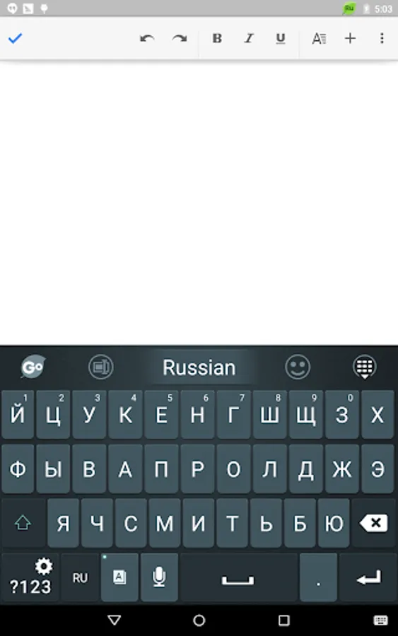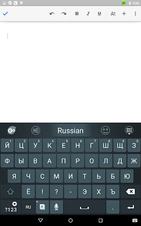 download this FREE Russiantranslation pack to use it with your GO Keyboard.