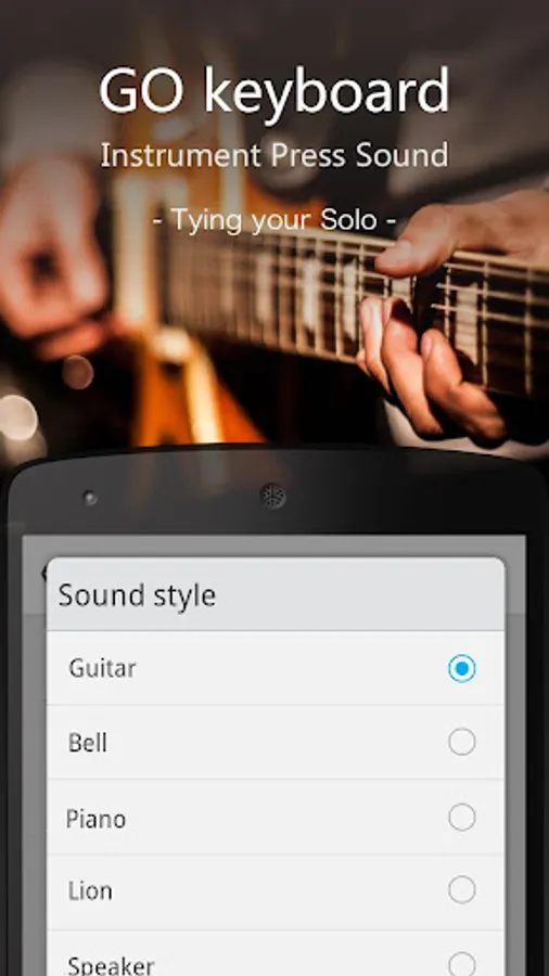 2. After download the GO Keyboard, Please click open GO Keyboard icon -> Sound And Vibrate -> Sound style -> Slide to choose which sound you like