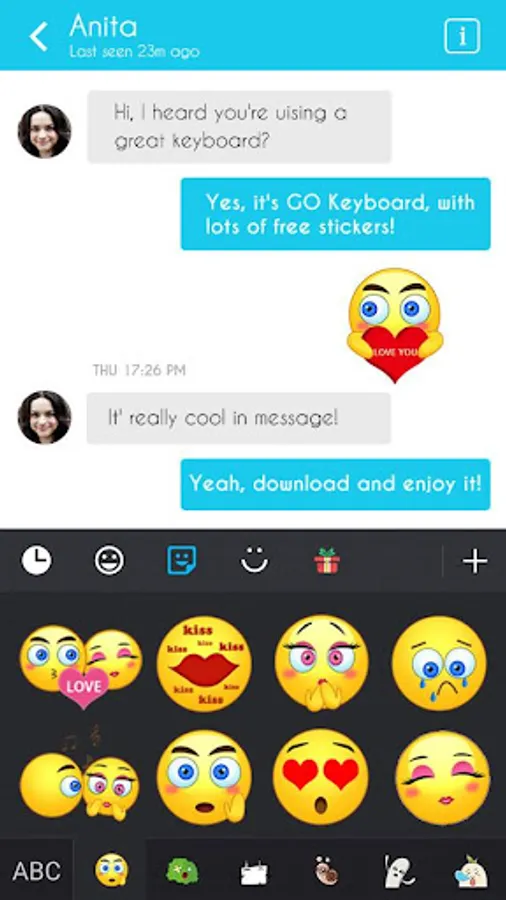 This Sticker is totally free and customed for GO Keyboard(with 10000+ colorful themes and 800+ emoji, emoticons and smiley faces)!