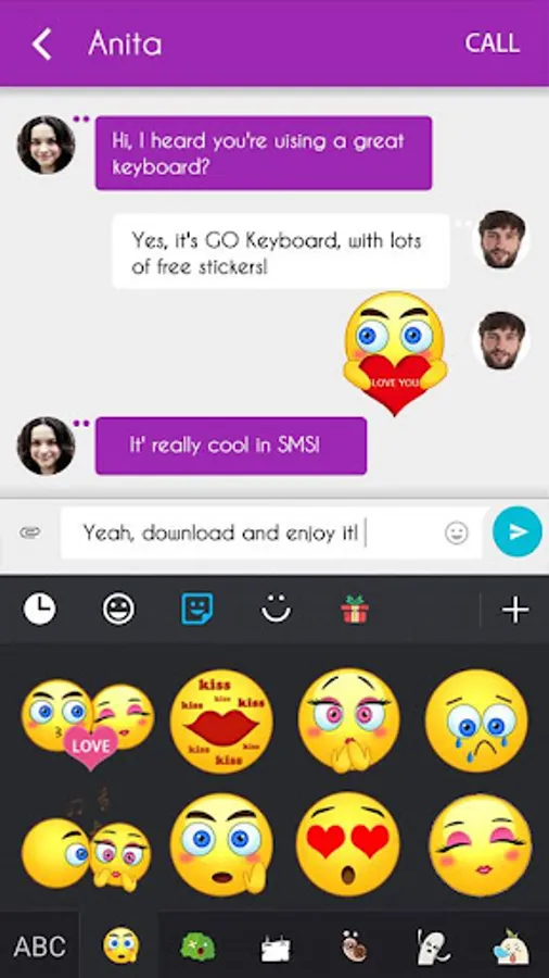 Step 2. You can find stickers on your Emoji panel on GO Keyboard.