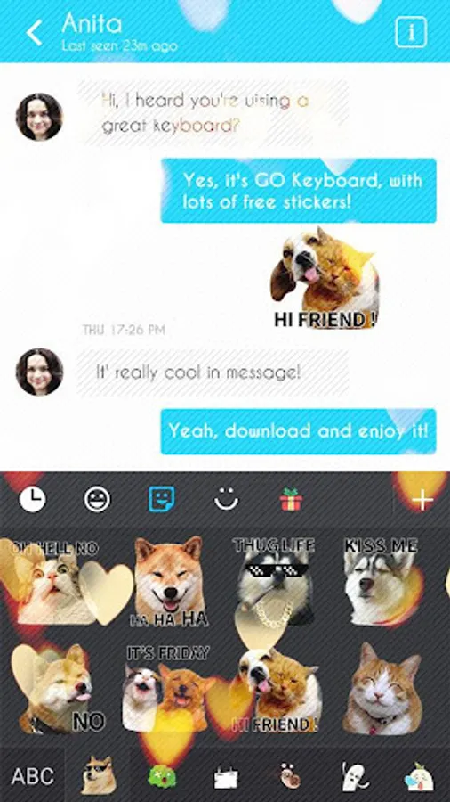 Step 2. You can find stickers on your Emoji panel on GO Keyboard.