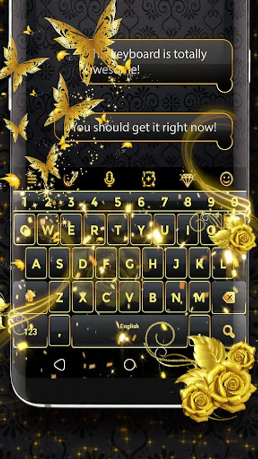 👍 Tell us your opinion and how to make our black theme better! More custom keyboards themes and elegant wallpapers with gold butterfly on screen for your device await you!