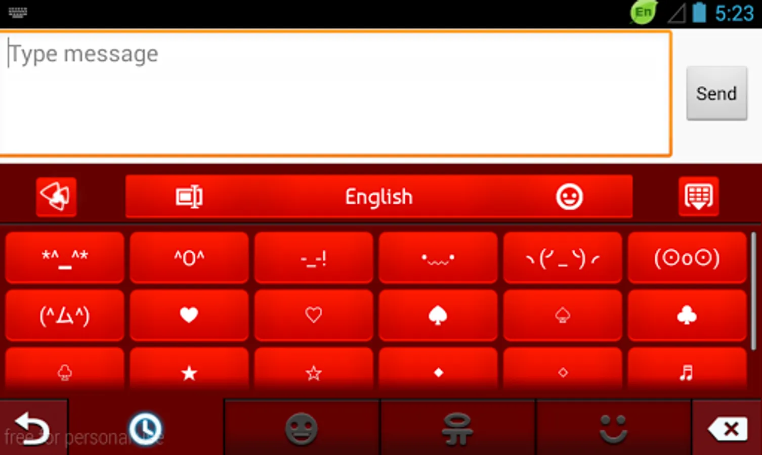 Press the "Keyboard" button and follow instructions for Red Rose Keyboard. After you change your default keyboard you can make your custom keyboards by choosing themes and animations. Customize your keyboard with elegant red roses wallpapers and choose from many colorful keyboard themes, some 3D keyboard app themes have animation so you get cool animations and an excellent typing experience. Type faster using next word prediction, gesture typing, dictionary and fast auto-correction and have fun with emojis! Voice input is also included.