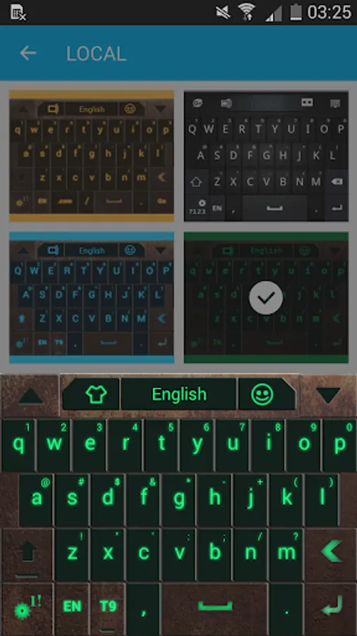 Start Go Keyboard: Themes -> Tap on the small icon in top right corner -> Apply