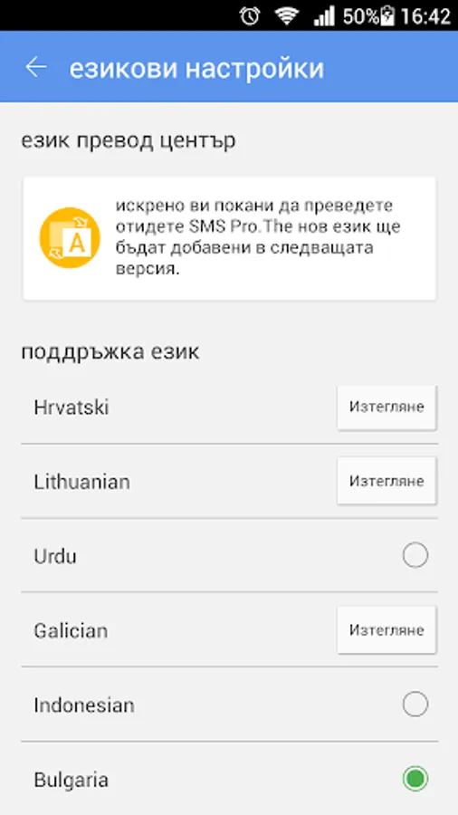 This is Bulgaria language for GO SMS Pro, completed close to 100%.