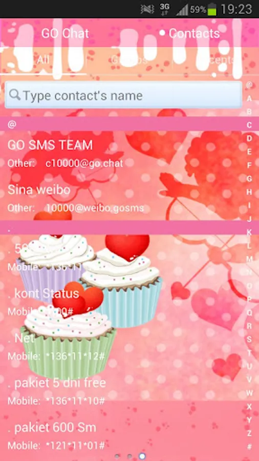 5. Tap the cute sweet GO SMS Pro theme cupcake heart