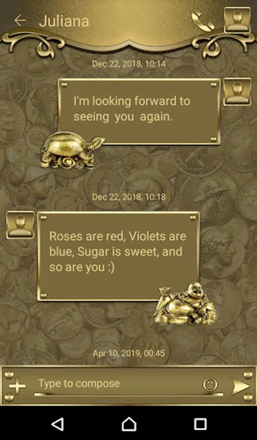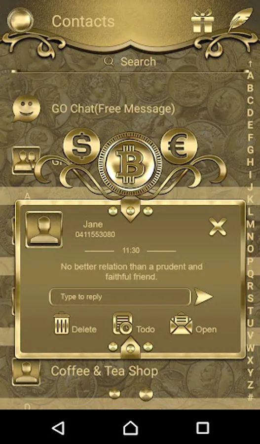 In new versions of Go SMS Pro the appearance of this theme may differ from what is shown on screenshots. To make it look the same you need to install older version (6.42 or older).