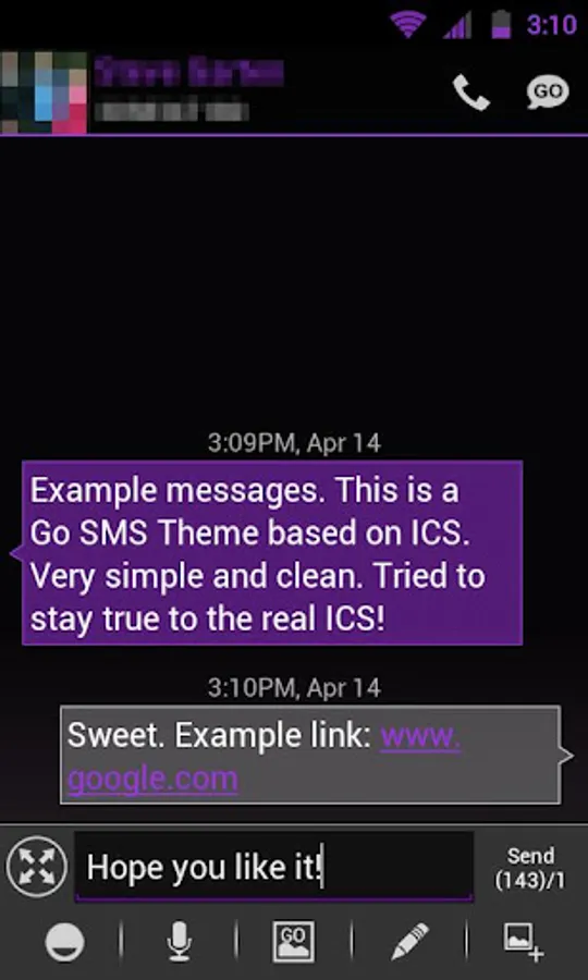 Looking for a purple ICS theme for Go SMS Pro? Well look no further!