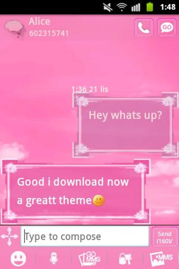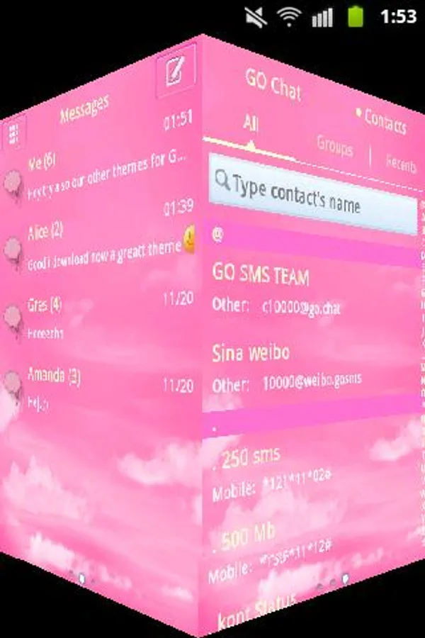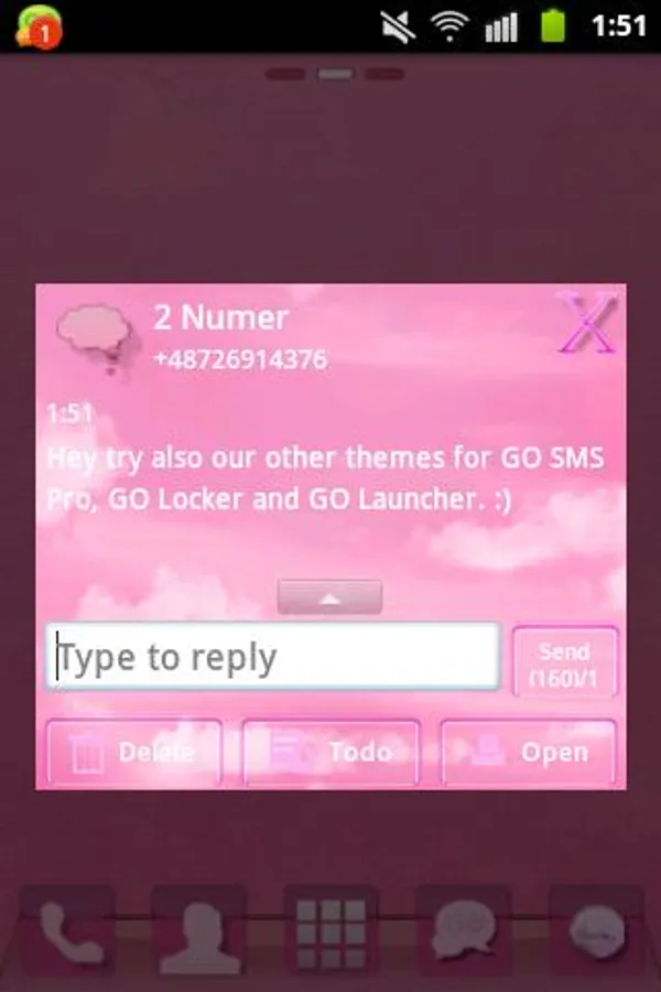 5. Tap the cute sweet GO SMS Pro Theme Pink Clouds