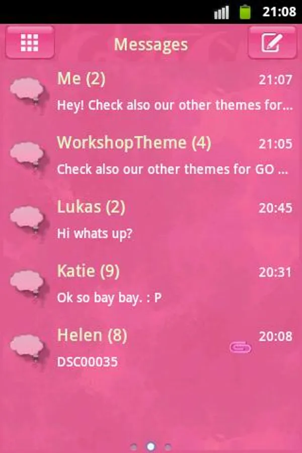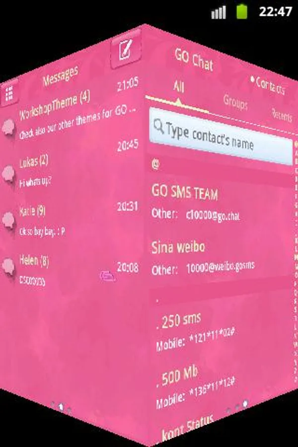 If you very like color pink and in your device, You will love the pink skin for gosms. Make Your android world more pink brighter, brilliant and compelling, loving and happines. Make you and your lover full of sweet and romance with this style.