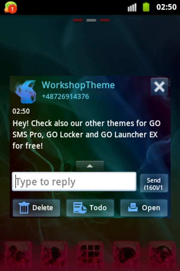 Check other our GOSMSPro Themes, GO Locker Themes, and GO Launcher EX, free themes.
