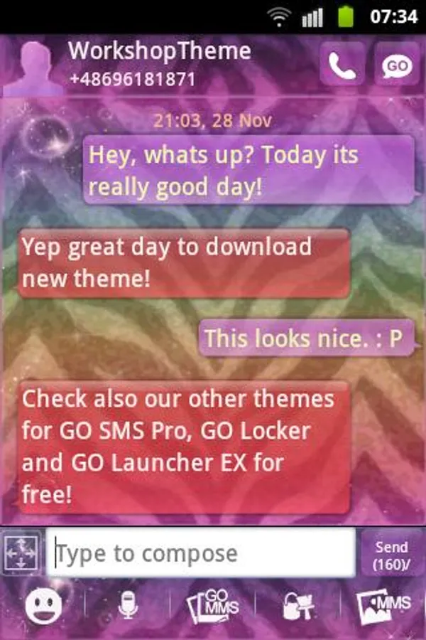 Check other our GOSMSPro, GO Locker and GO Launcher EX, free themes.