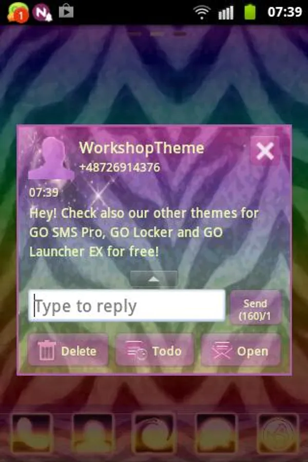 New colors with tone neon zebra style from future now in Your devices! The colors of zebra skin for GO SMS Pro Theme = is minimalistic, simple and forward-looking.