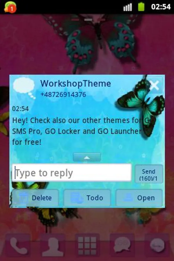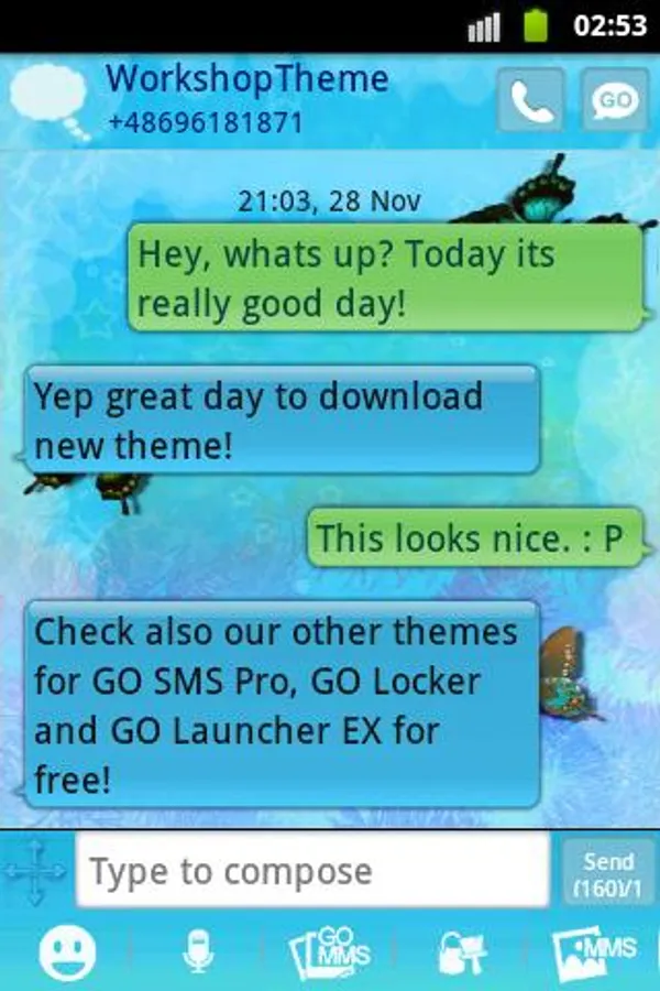 Blue butterfly Theme GO SMS works only with GO SMS Pro application if you don't have it, download for free from Google Play.