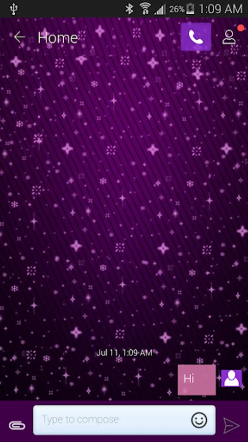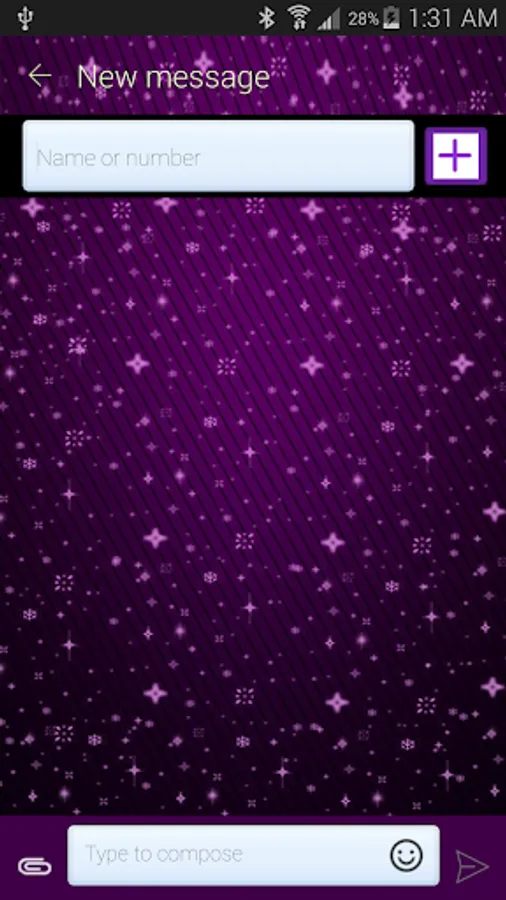 -Go SMS Pro Purple&Black Theme is inspired by the mixture of the beautiful colors of purple and black. Not only is this theme beautiful, it also provides sparkle colors.