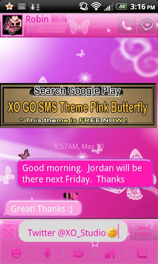 App Description: This theme will work with GO SMS PRO application ONLY. It allows users to have fun changing the look of their Text, SMS or Chat interface on their Android phones.