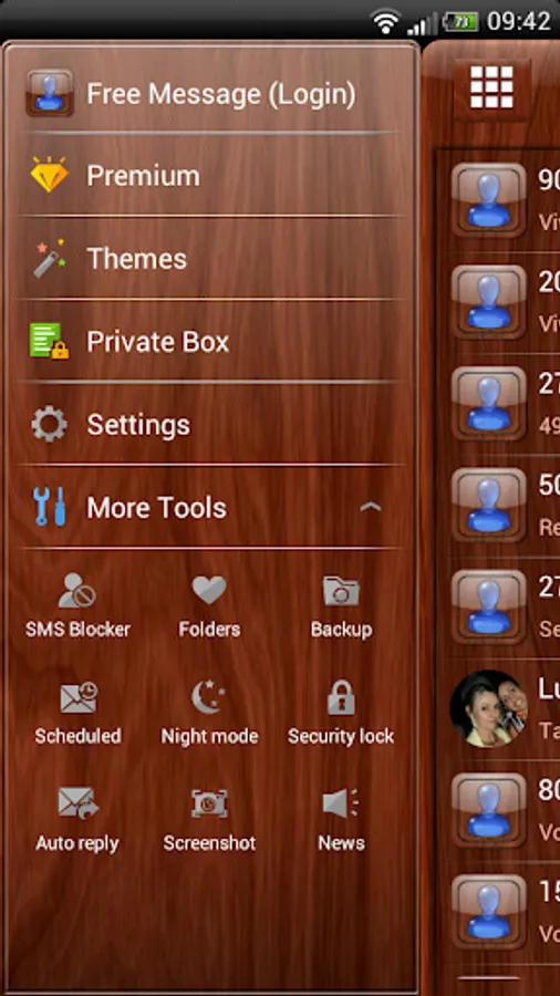 A nice and clean Mahogany Wood theme for GO SMS PRO.