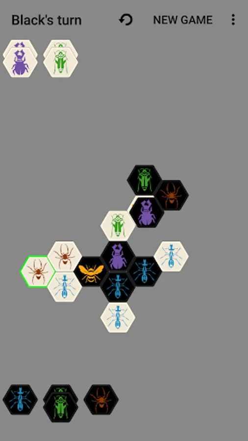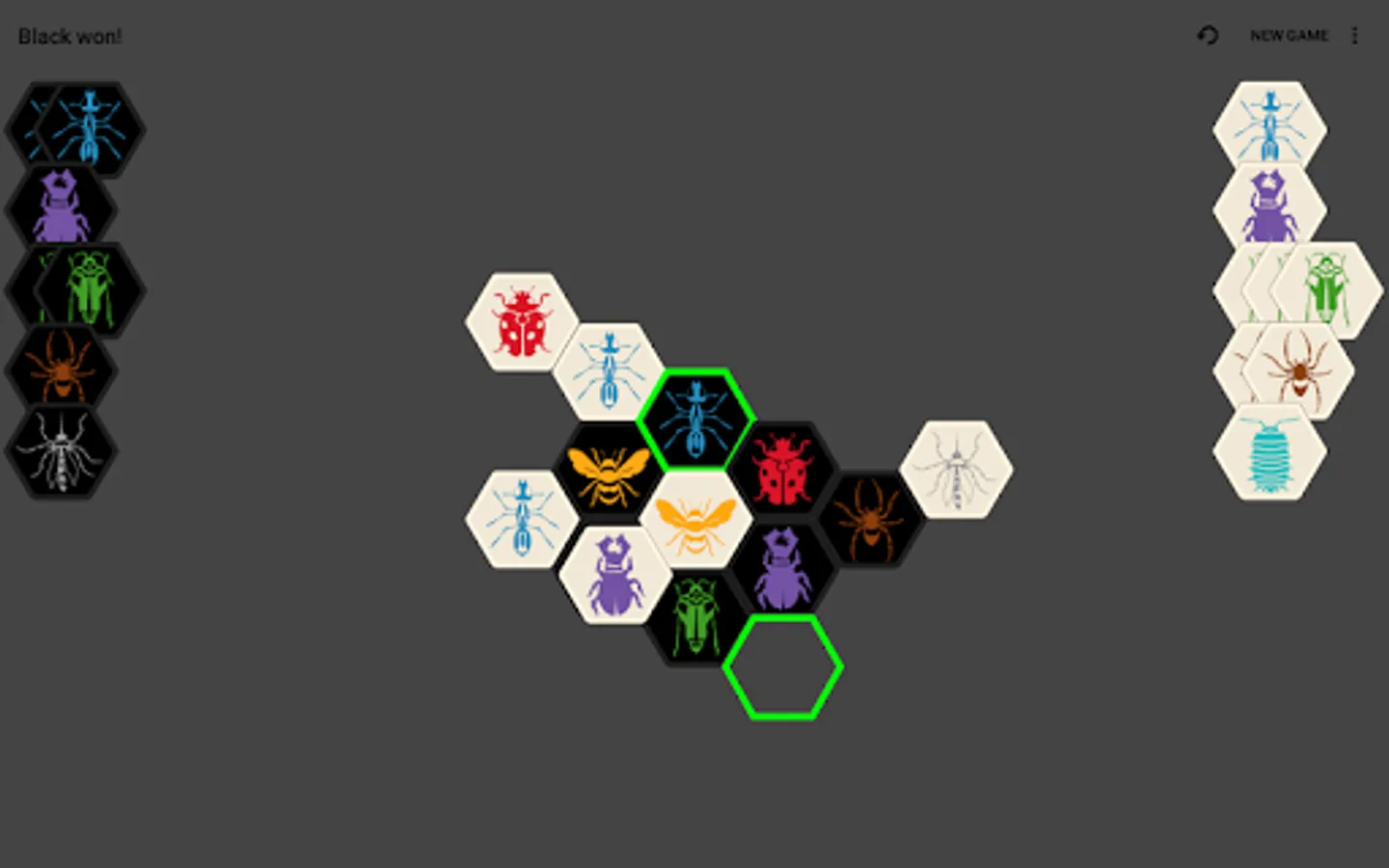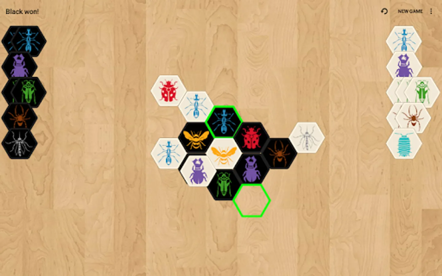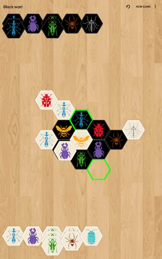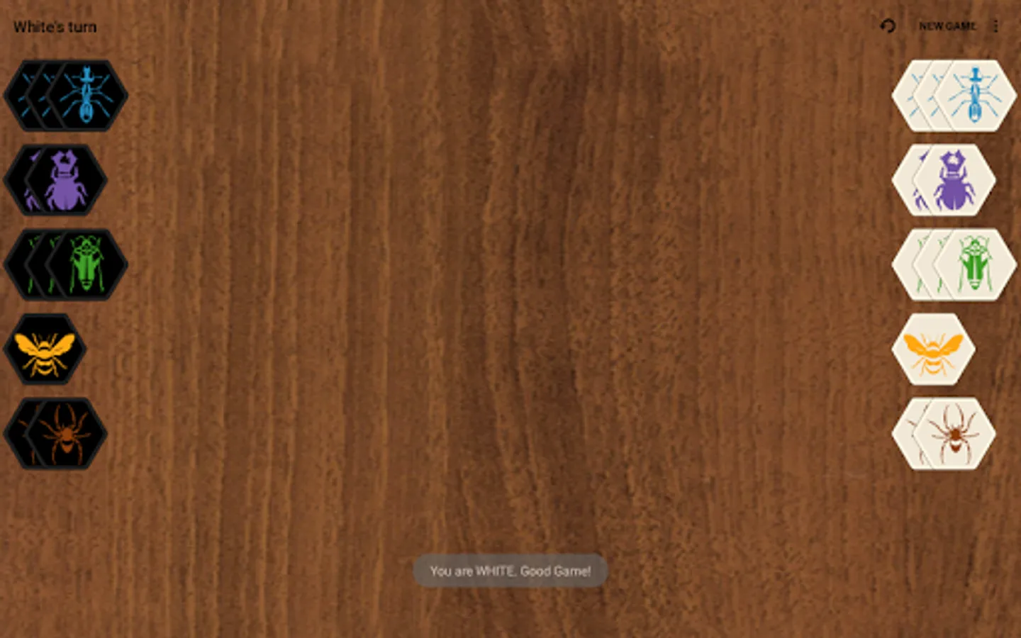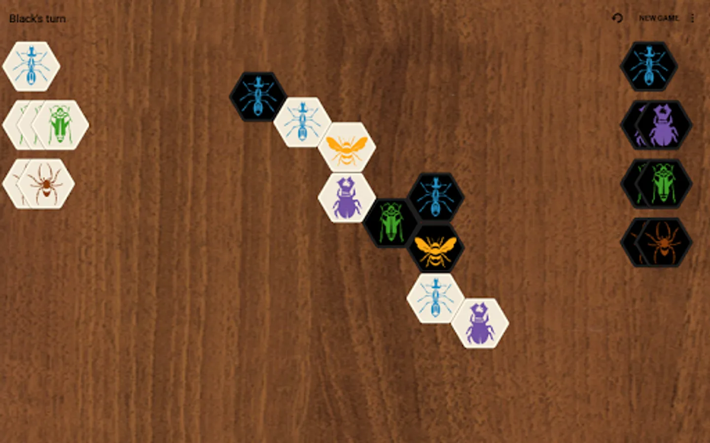 The soldier ants battle to keep control of the outside of the hive, whilst the Beetles climb up to dominate the top. Spiders moving into holding positions as the Grass Hoppers jump in for the kill. Keeping one eye on the hive and the other on your opponents reserves, the tension builds as one wrong move will see your Queen Bee quickly engulfed... game over!