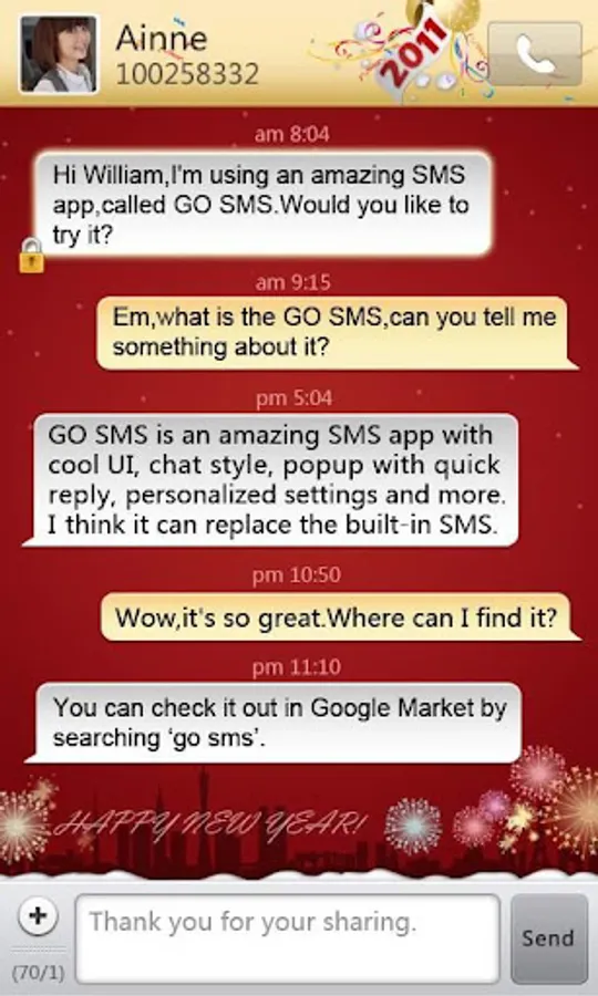 Happy New Year!Thanks for your support to GO SMS Pro.