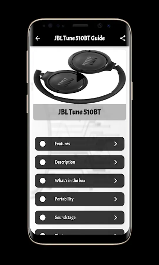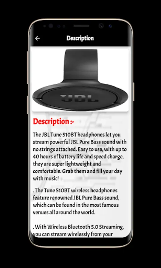 JBL Tune 510BT Guide is an application that provides you with many ideas on how to use the JBL Tune 510BT by providing a user guide for the JBL Tune 510BT, which you can view clearly and easily, and you can also access many of the features of the JBL Tune 510BT through the application JBL Tune 510BT Guide Your Tune 510BT wireless headphones feature the famous JBL Pure Bass sound, which can be found in the most famous venues around the world.