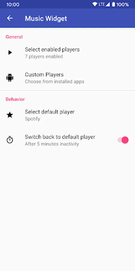 • Automatically switch back to your default player after 5 minutes of inactivity