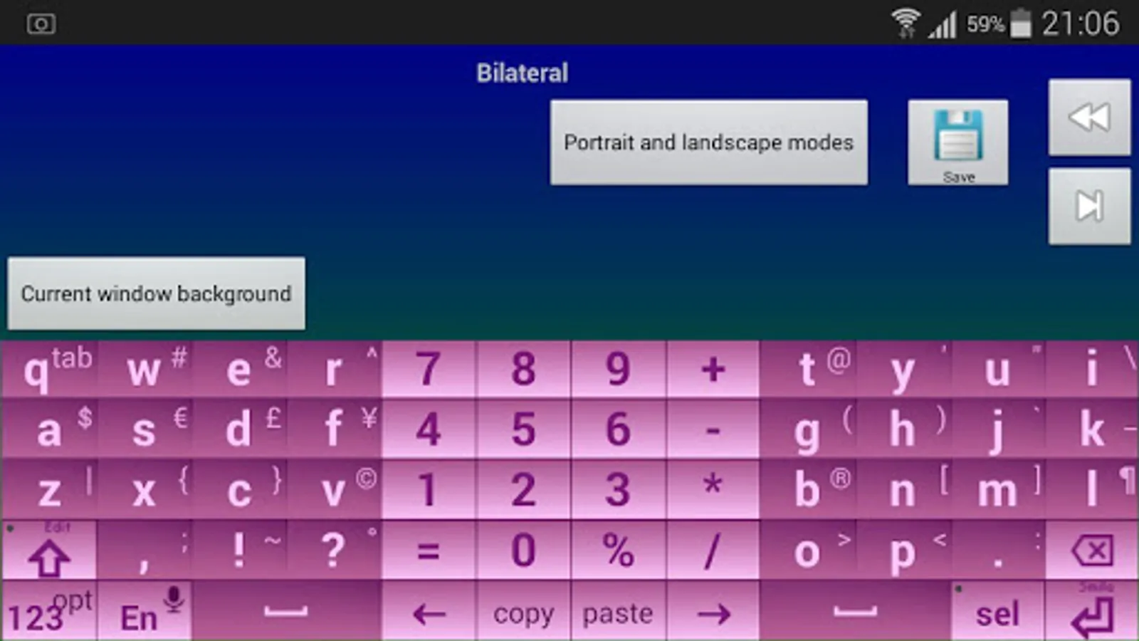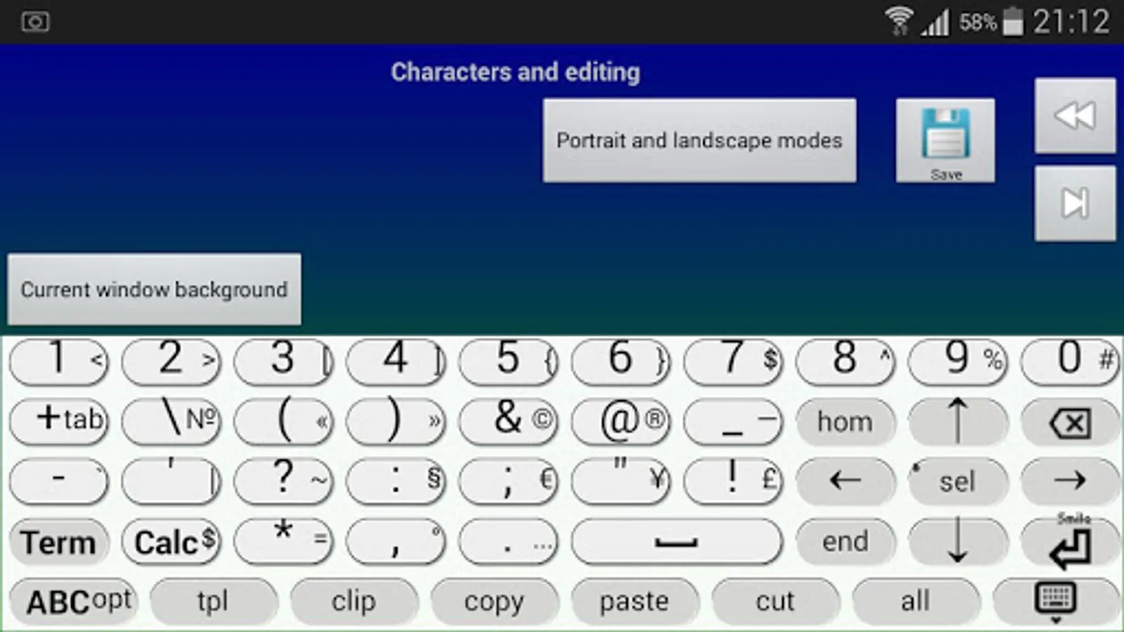 *Holding the 123 (opt) key, you call the main menu of the keyboard. It contains various useful links: Settings, Multi-clipboard, Templates, Calculator, etc. You can also customize menu items to display.