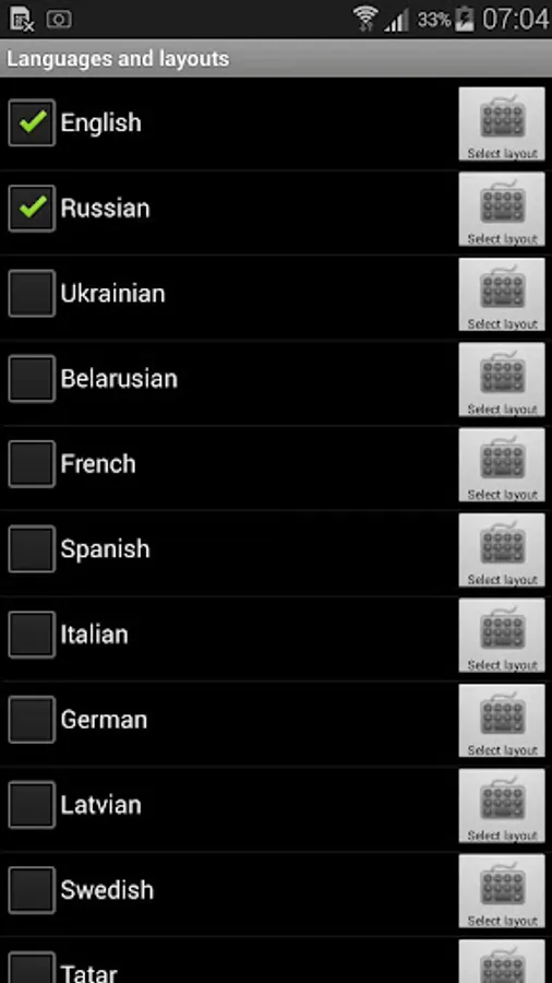 < There are at least two layouts for each language. In total, as of August 2016, the keyboard contains more than 100 layouts for different languages.
