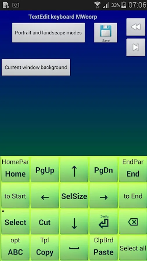 Professional, fully customizable, lite, fast keyboard for phones, tablets, rounded smartwatch and etc, with multi-clipboard, arrows, big buttons, 3 built-in types of calculator, unlimited number of custom gesture, haptic feedback, sound and other features. It requires very little memory