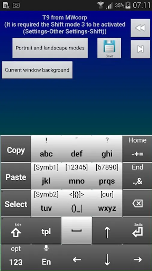 *By holding the Shift key, a special layout for text editing will be displayed that contains arrows, clipboard commands allowing you to easily select, copy and paste text.