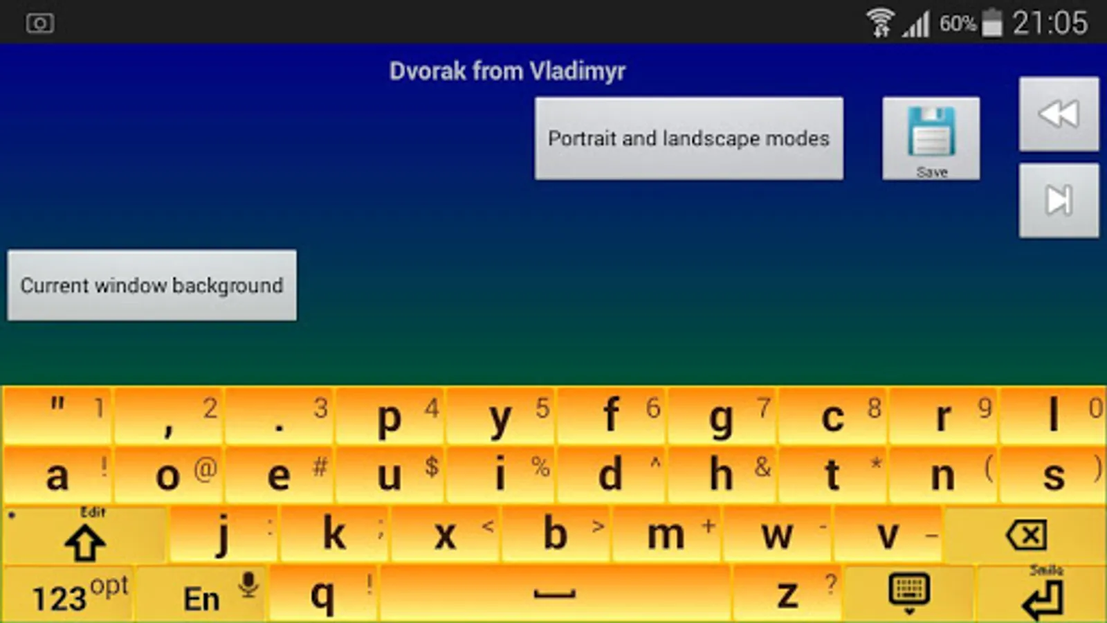 < Jbak2 keyboard is a layout (keyboard) constructor. You can create any sort of layouts, for any language you want.
